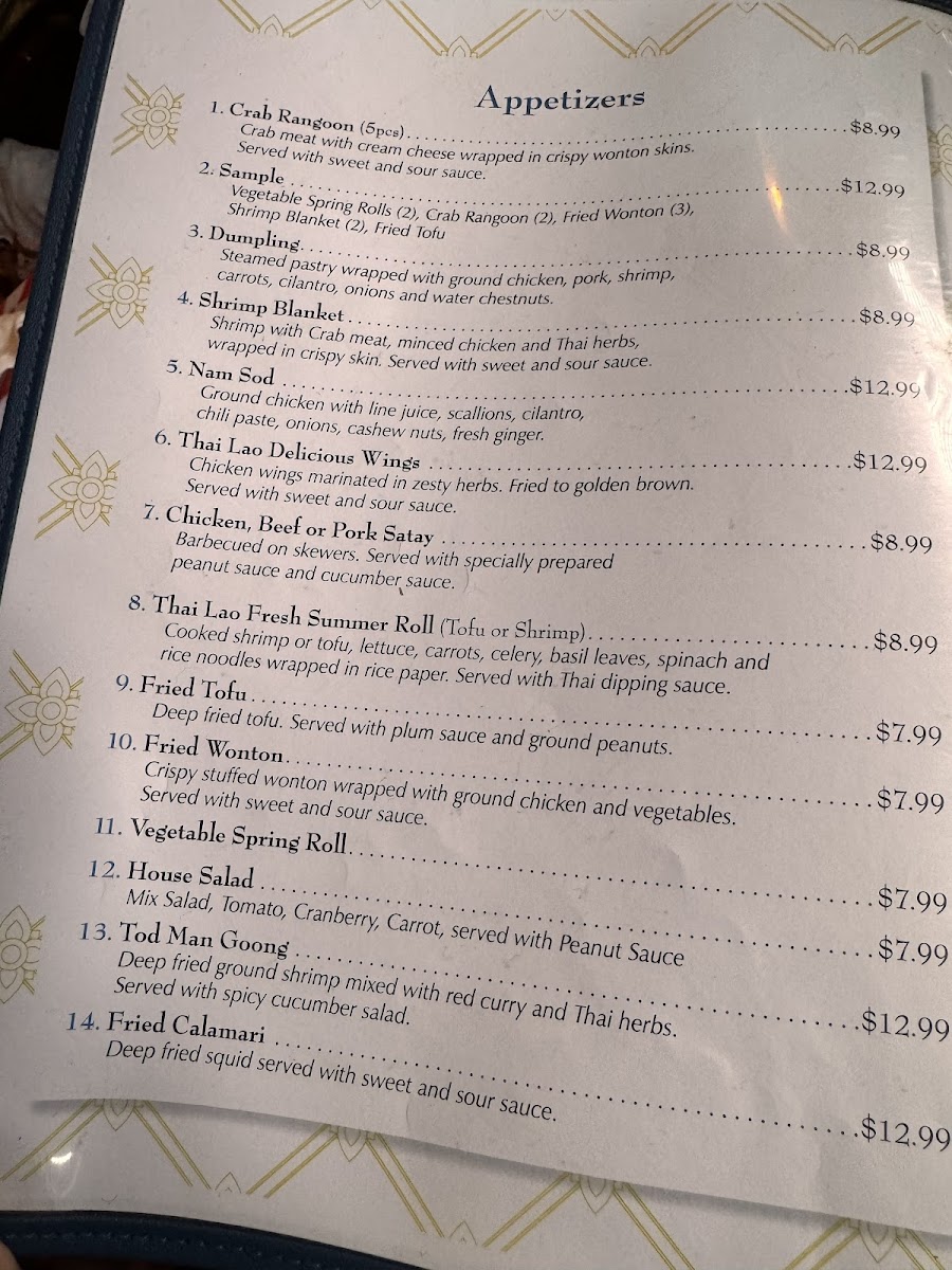 Ground (your choice of Chicken, Beef or Pork) with lime juice, roasted rice powder, chili pepper, red onion, cilantro and scallions. Served with lettuce.